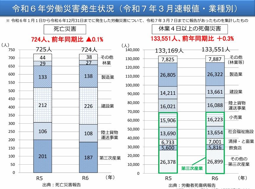 労働者死傷病報告の提出までの時間的なずれや、労働災害の調査による労働者性や業務上外の判明による変更などによっては、集計日の違いにより増減が生じることがあります。